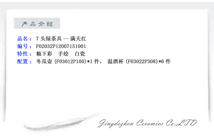 7头釉下青花茶具--满天红