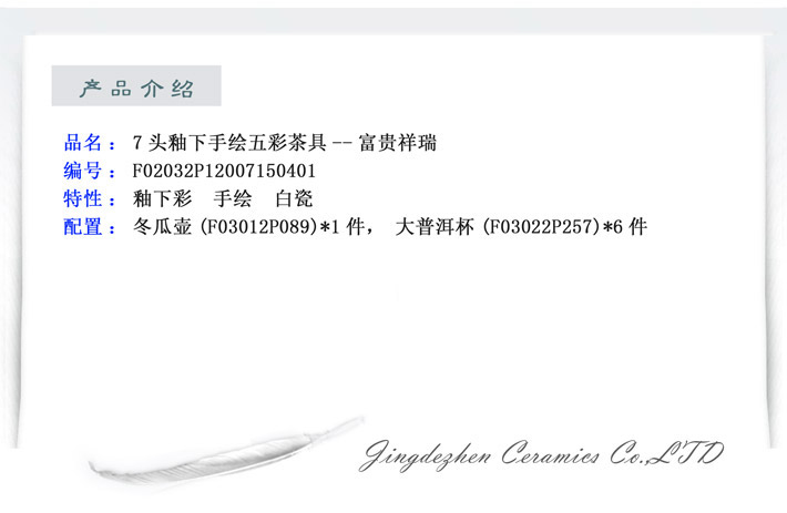 7头釉下手绘五彩茶具--富贵祥瑞