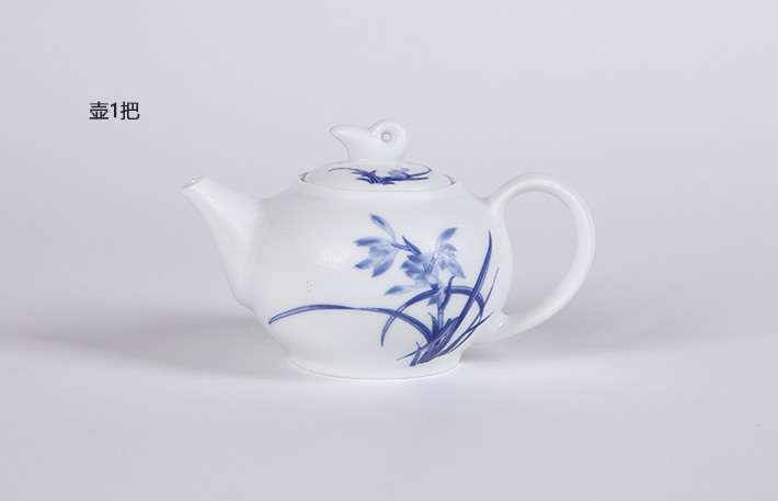 8头手绘青花工夫茶具国色天香