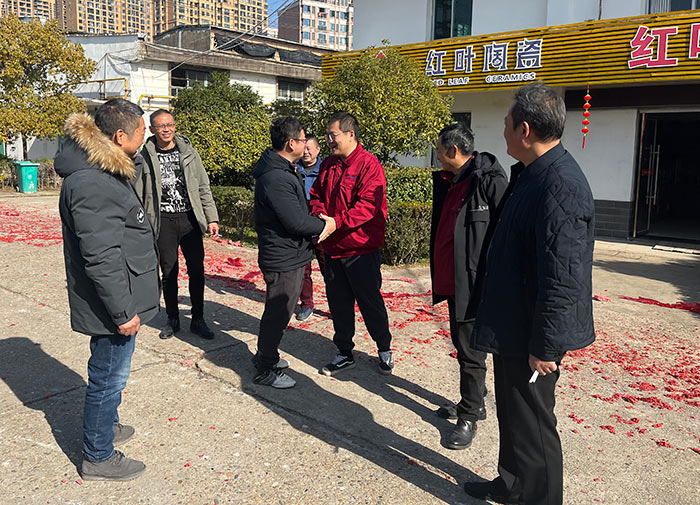 1月28日,集团副总经理陈渊、红叶公司总经理章彧到红叶公司三厂给干部职工拜年,向大家致以新春祝福,并对大家在过去一年的辛勤工作给予充分肯定和感谢。