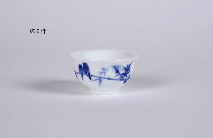 8头手绘青花绿茶具山高水长