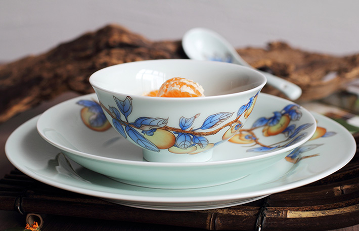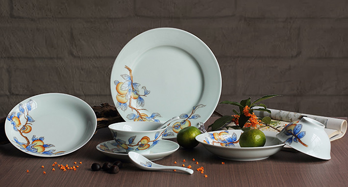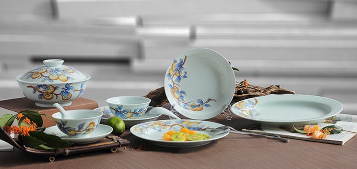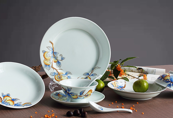 36头青釉手绘中餐具--事事如意