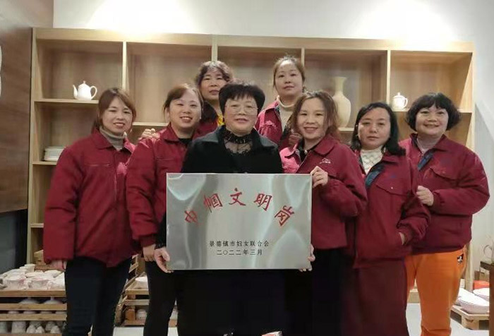 ·金品陶公司手工手绘车间手绘班组荣获2021年度市“巾帼文明岗”荣誉称号