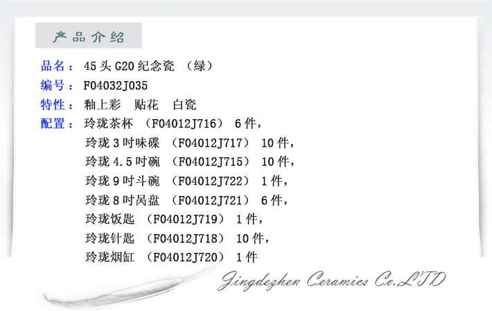 45头G20纪念瓷(绿)