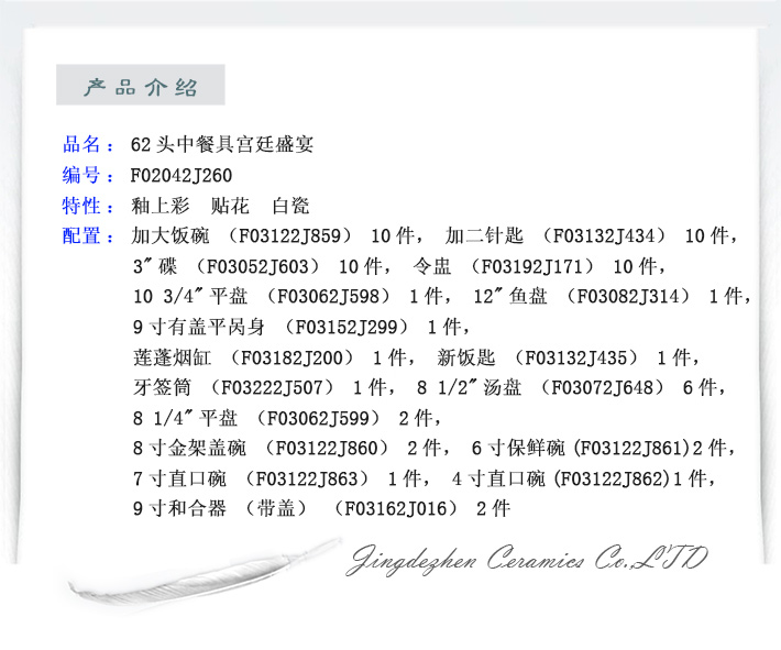 62头中餐具宫廷盛宴